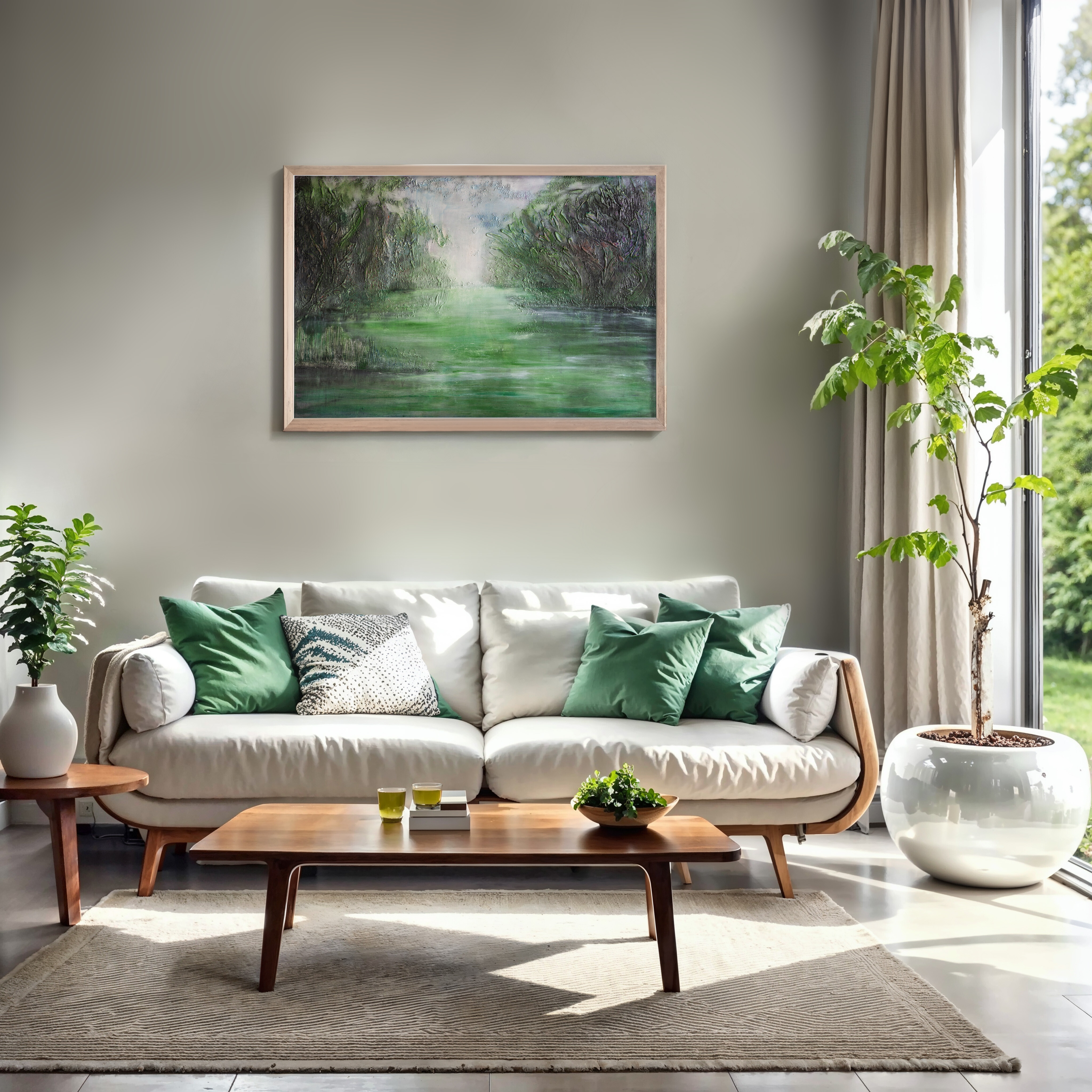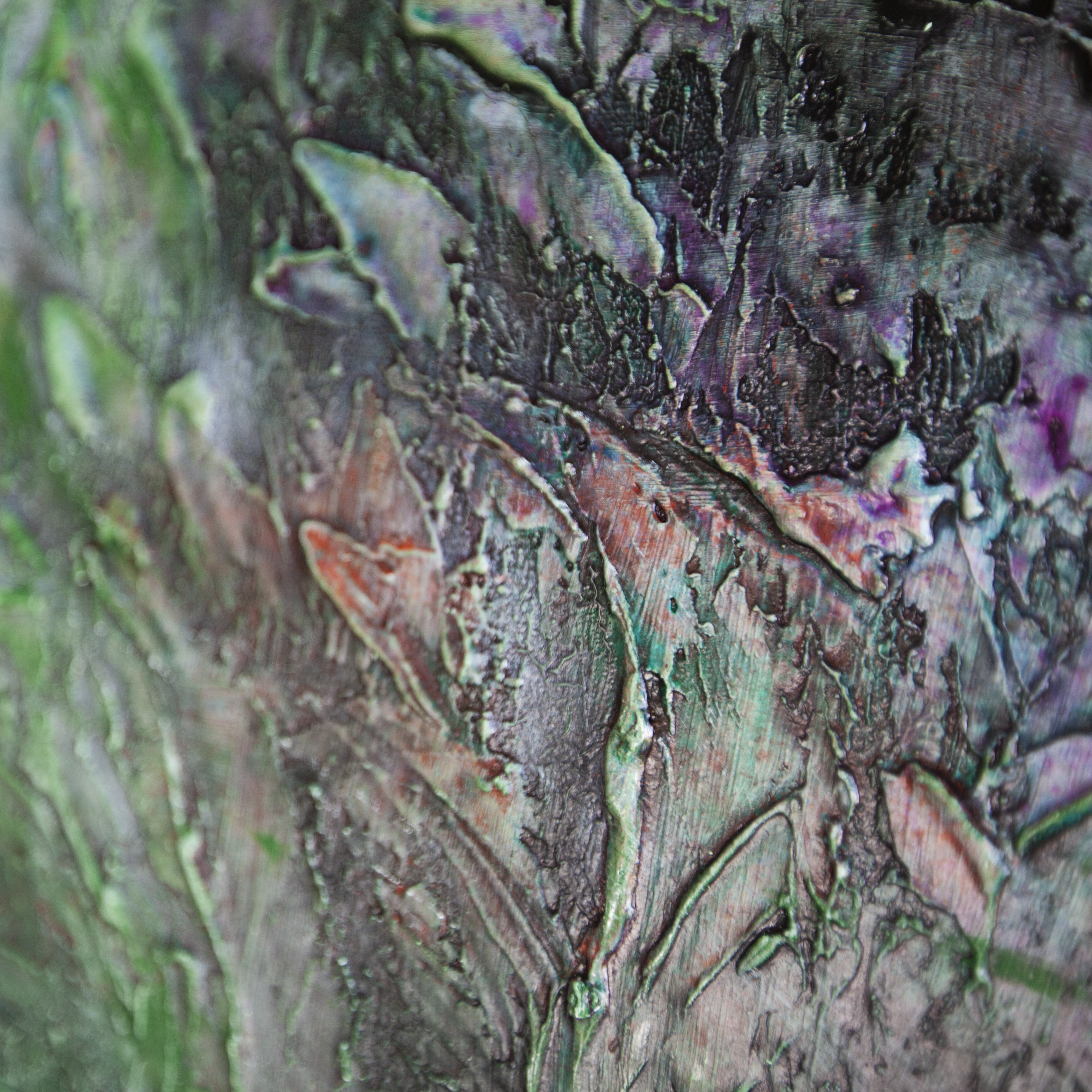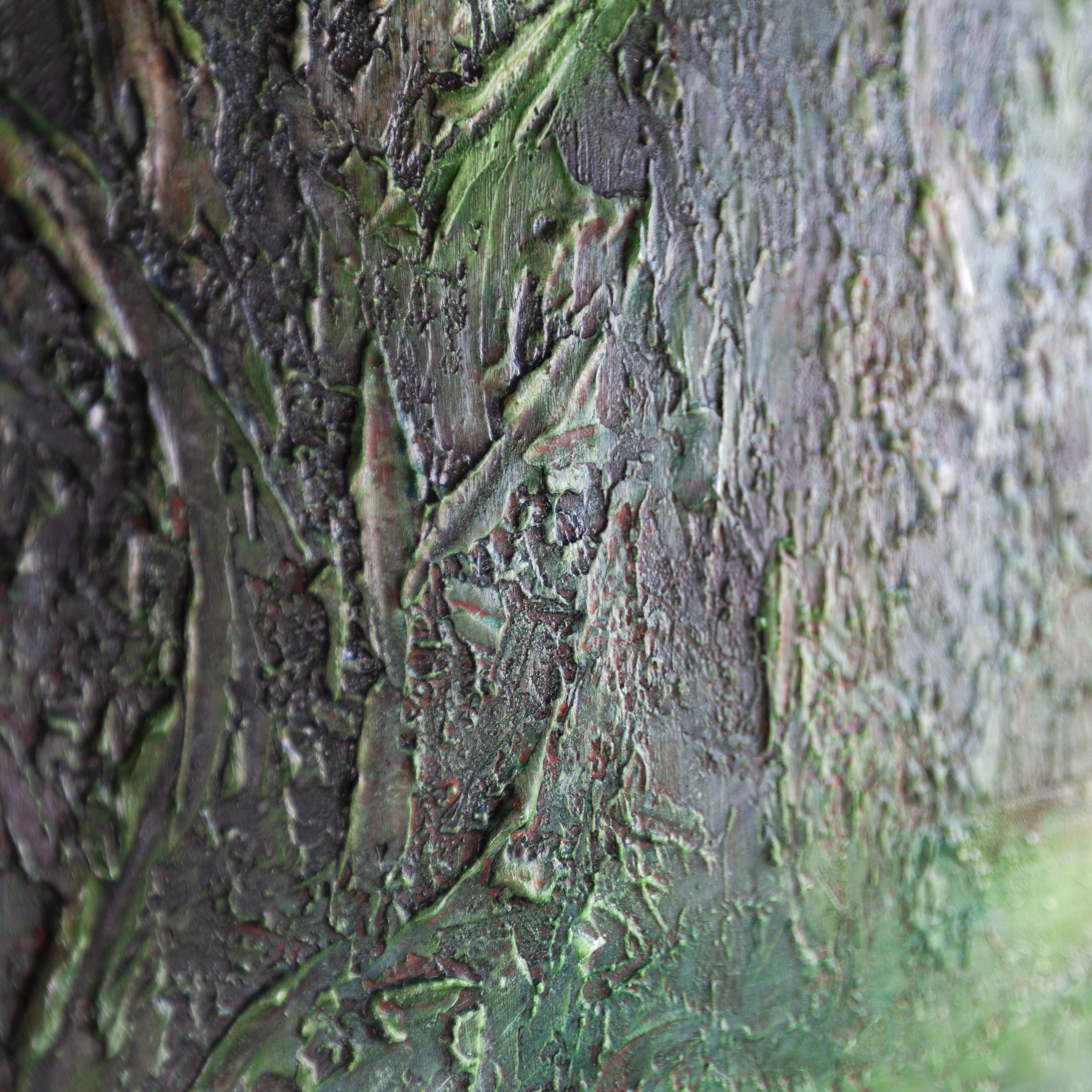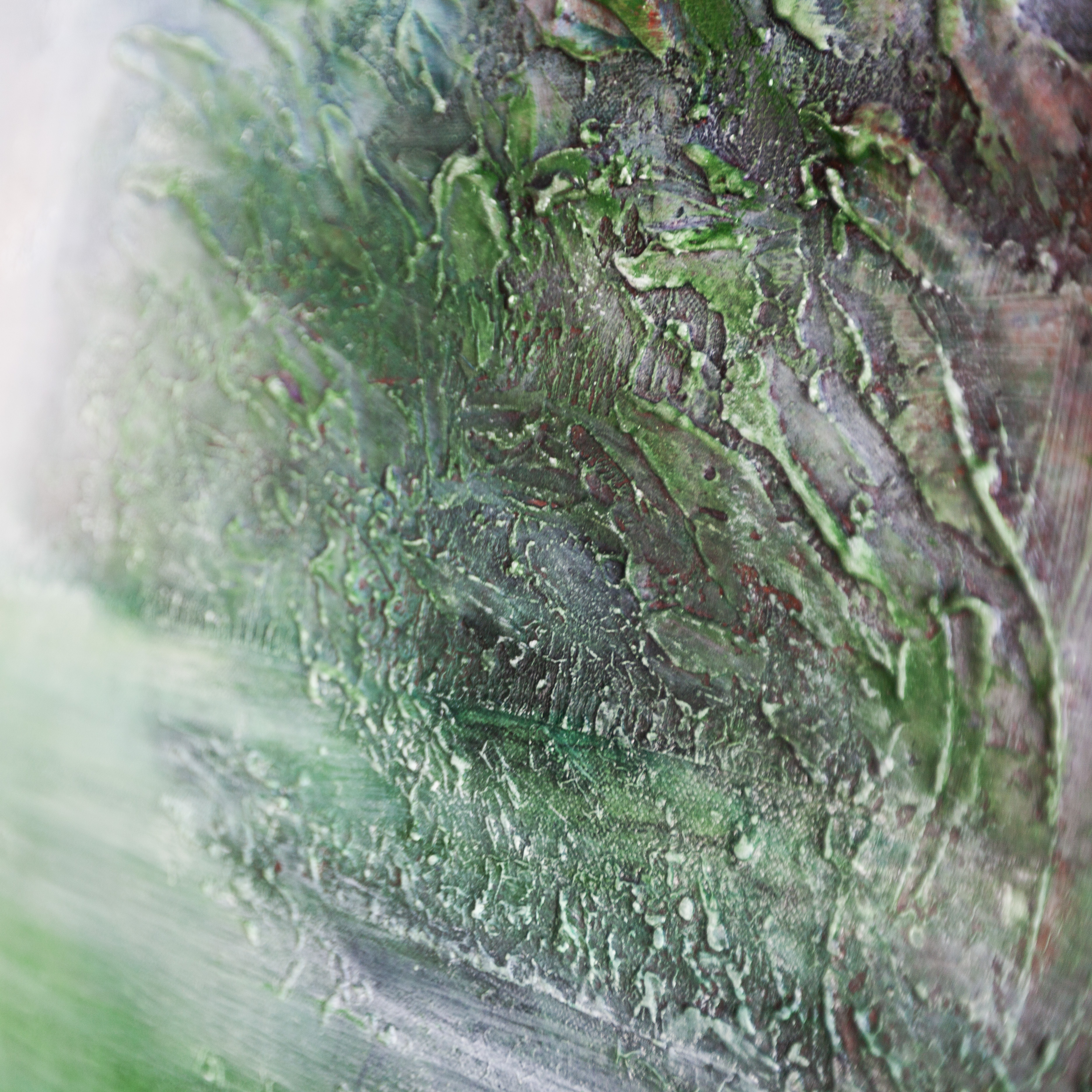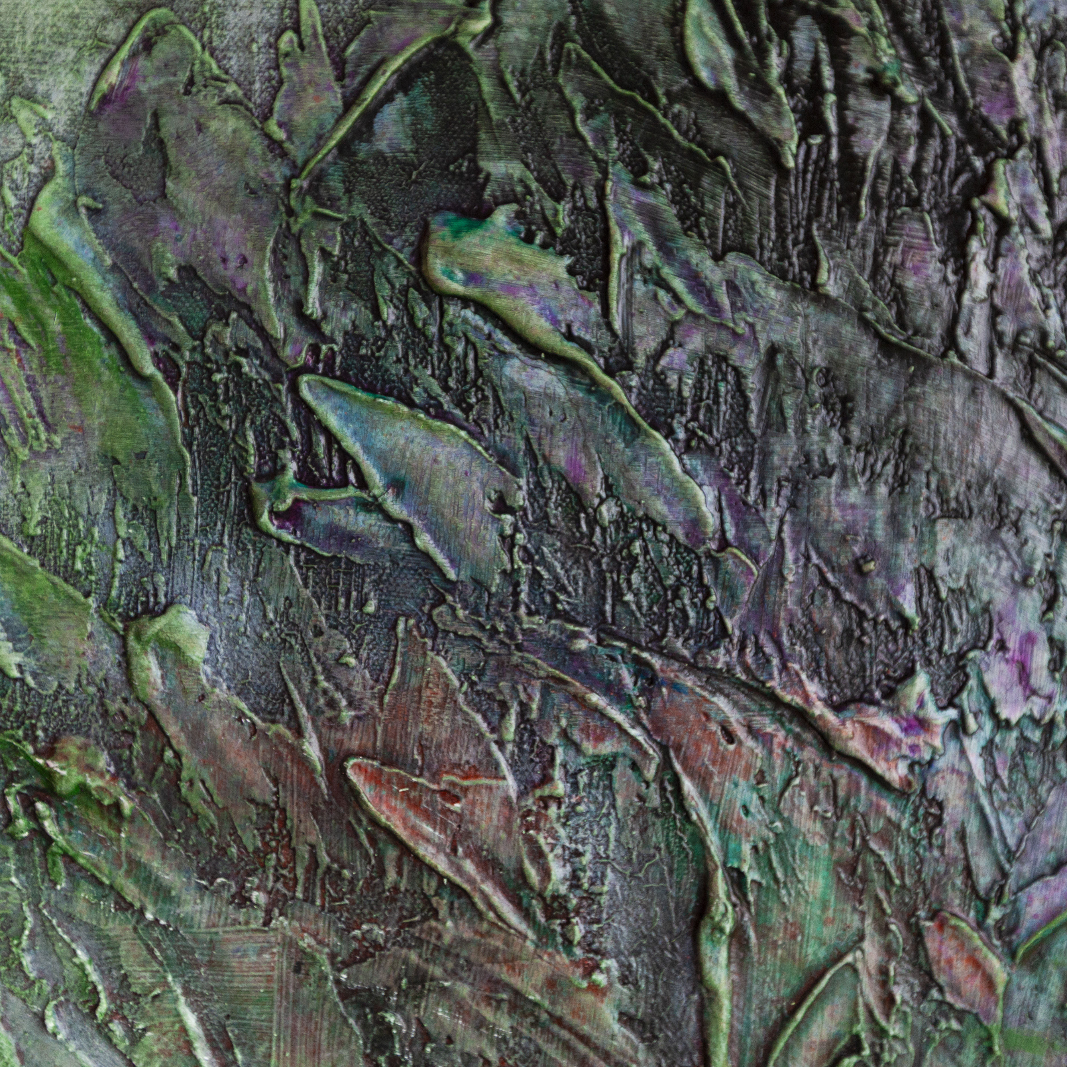 Obraz jest utrzymany w soczystej zieleni, która jest przełamana czernią i wielotonowością różnych odcieni, która możecie Państwo dostrzec na zbliżeniach.