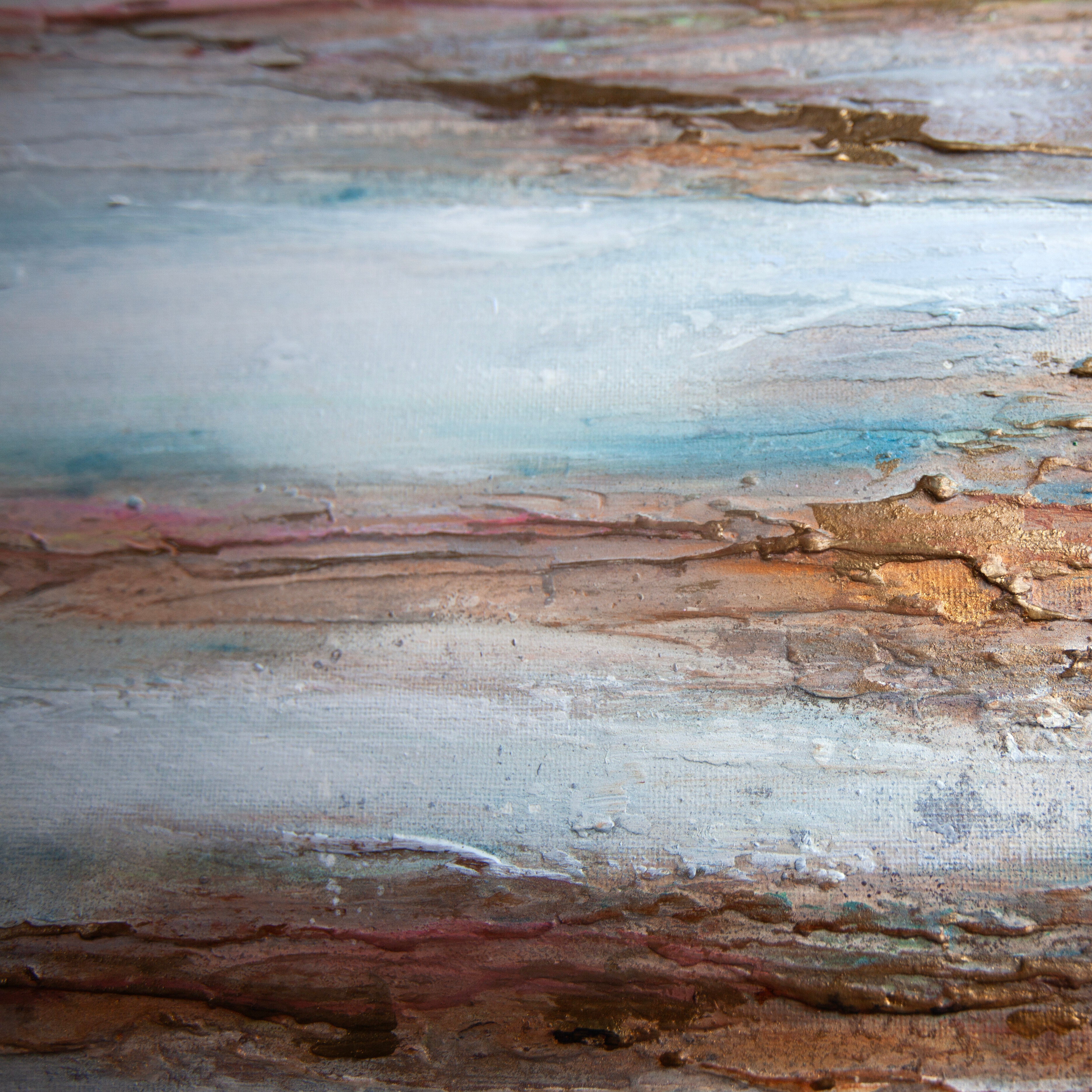 Obraz strukturalny wykonany techniką własną - akryl, pasta strukturalna, złoto w płynie. Obraz jest zabezpieczony werniksem błyszczącym i ma zamalowane boki w tonacji obrazu.