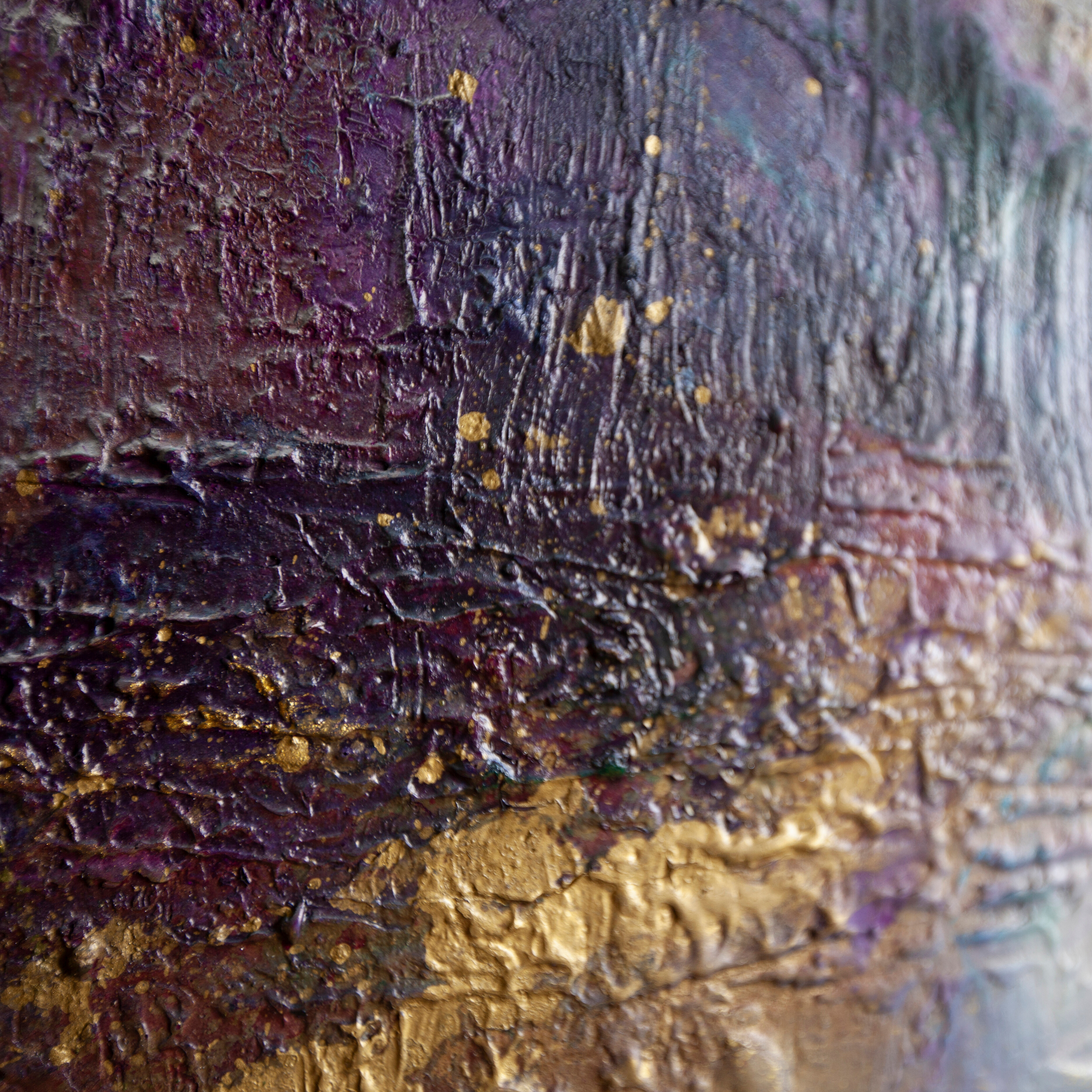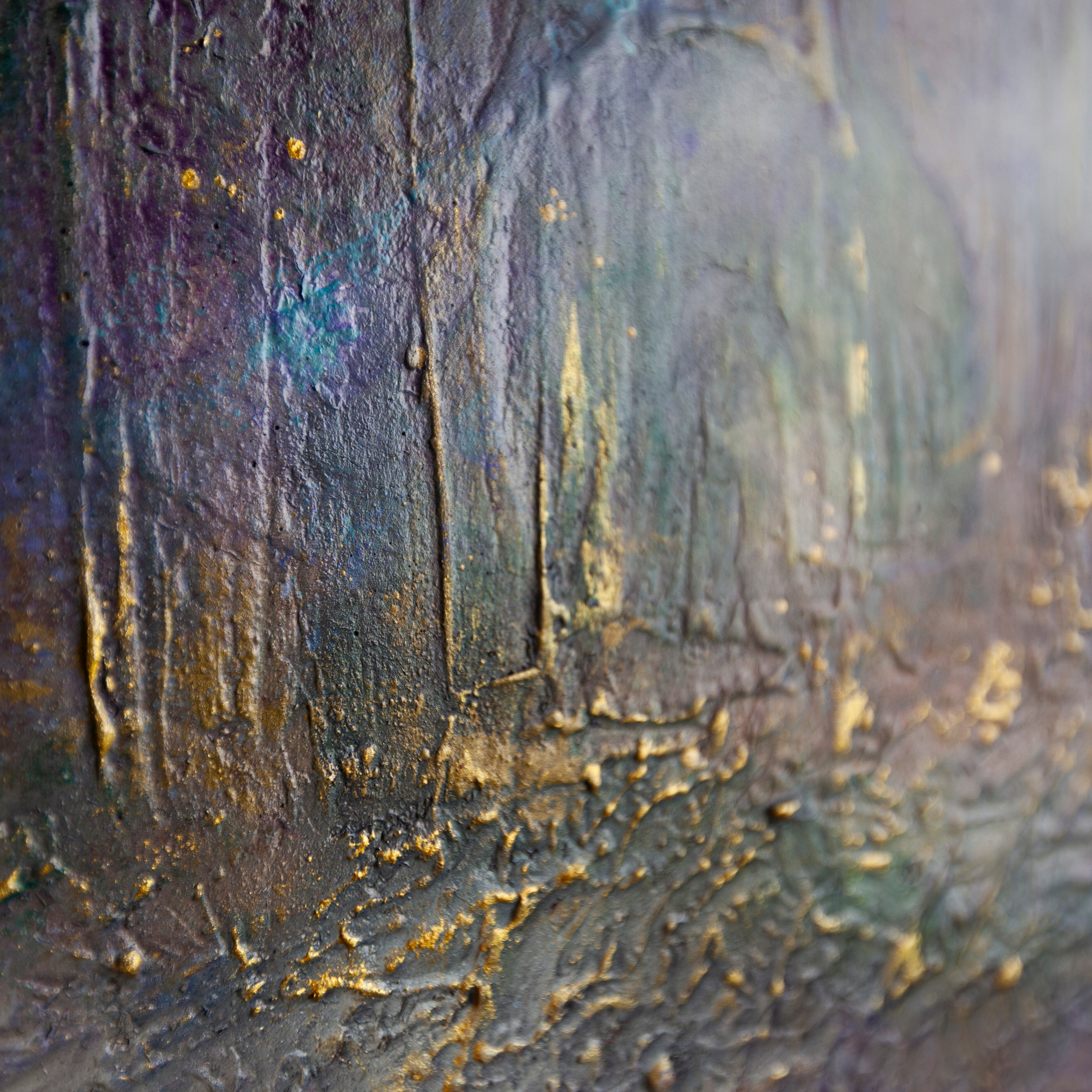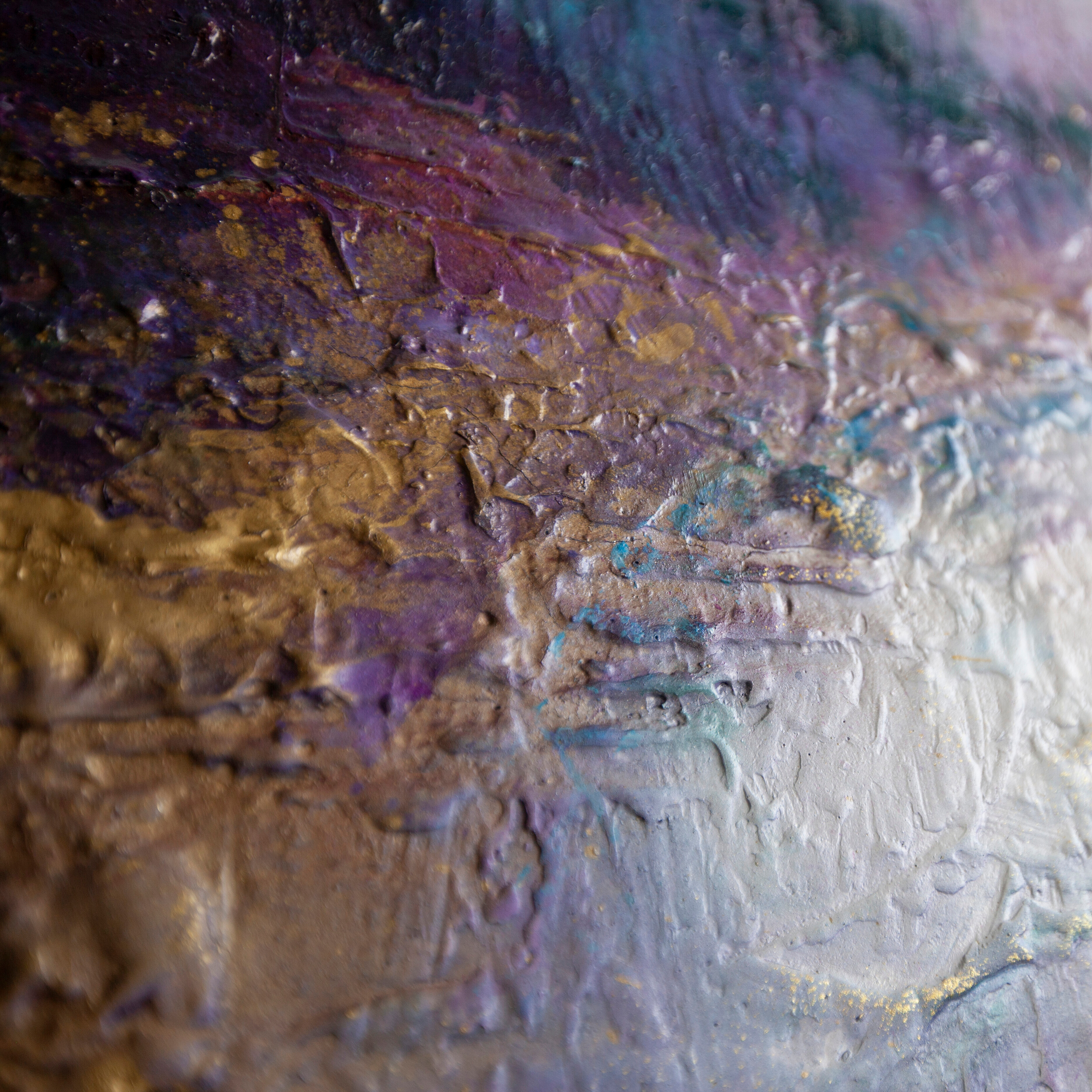 Obraz abstrakcyjny wykonany techniką mixed media - akryl, pasta strukturalna oraz pyłki UV i złoty spray. Obraz jest zabezpieczony werniksem satynowym. Boki obrazu zamalowane w tonacji obrazu. Obraz sprzedawany jest bez ramy.