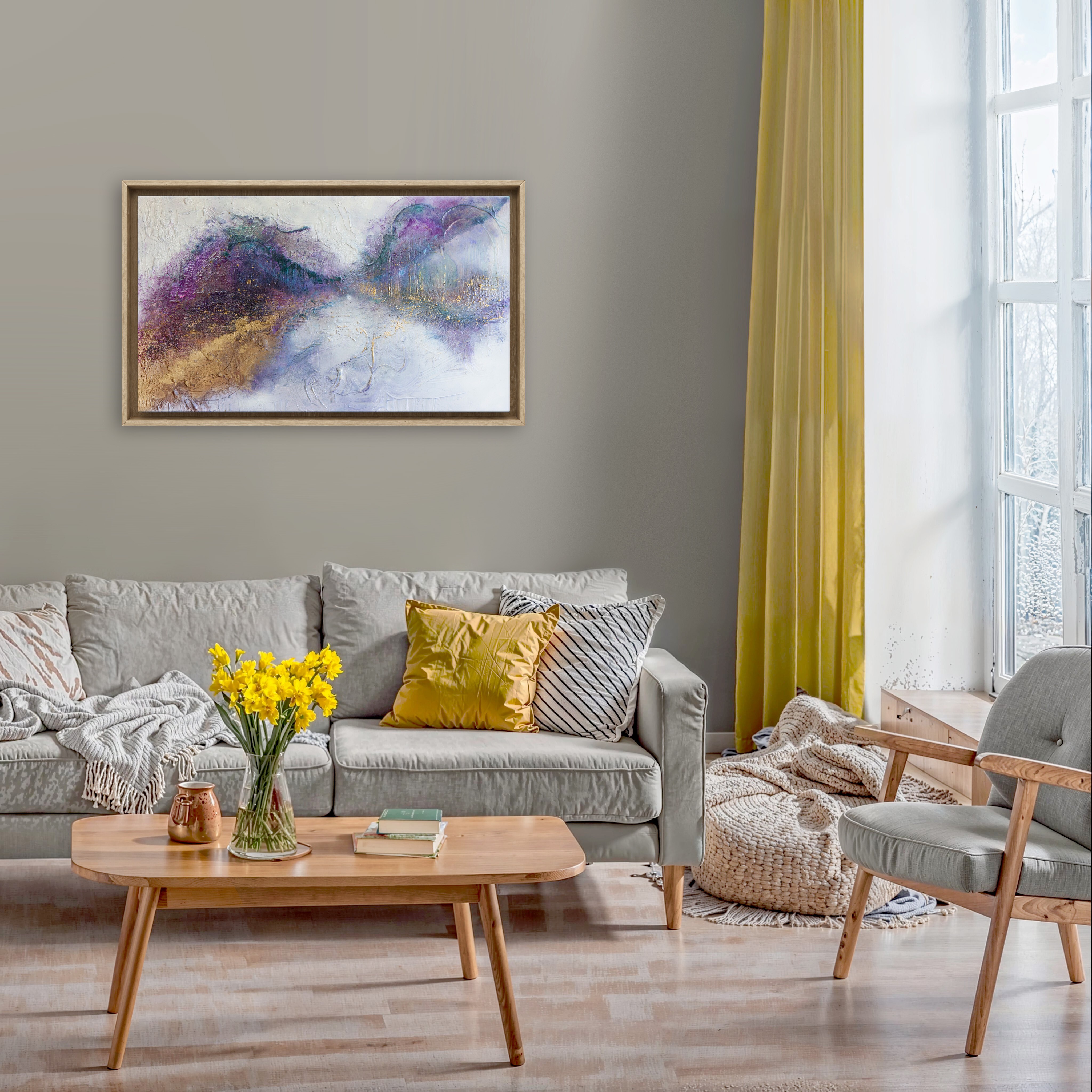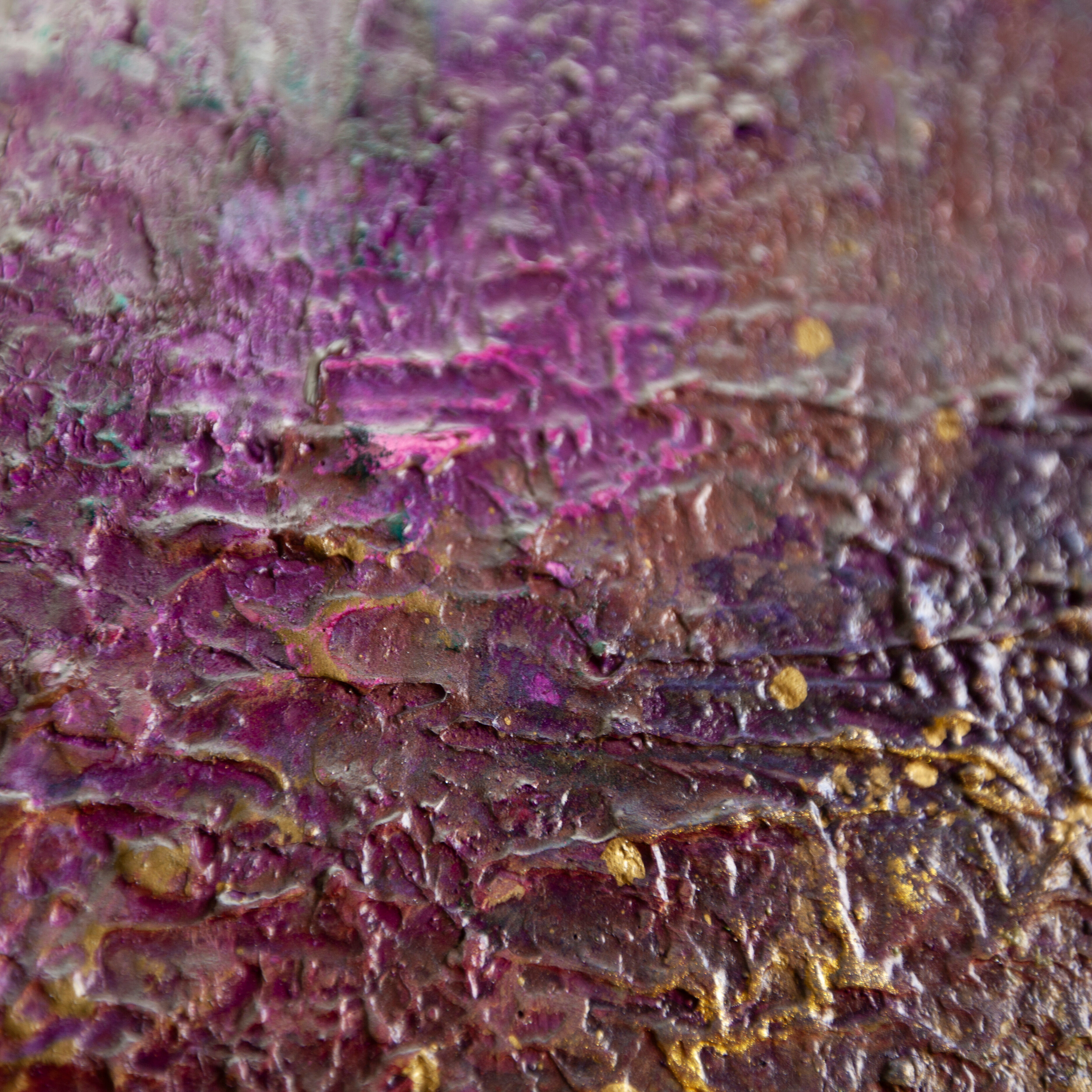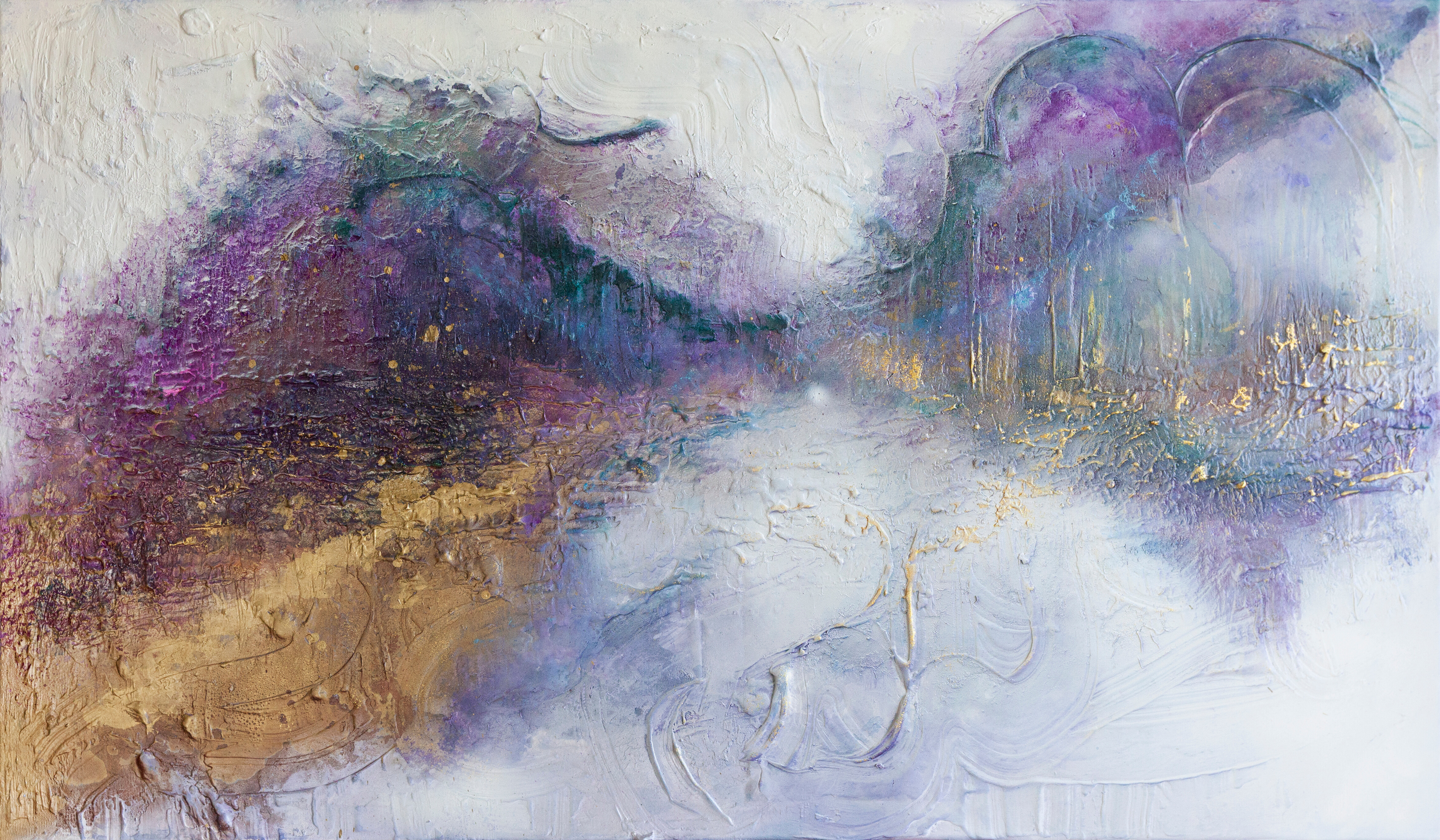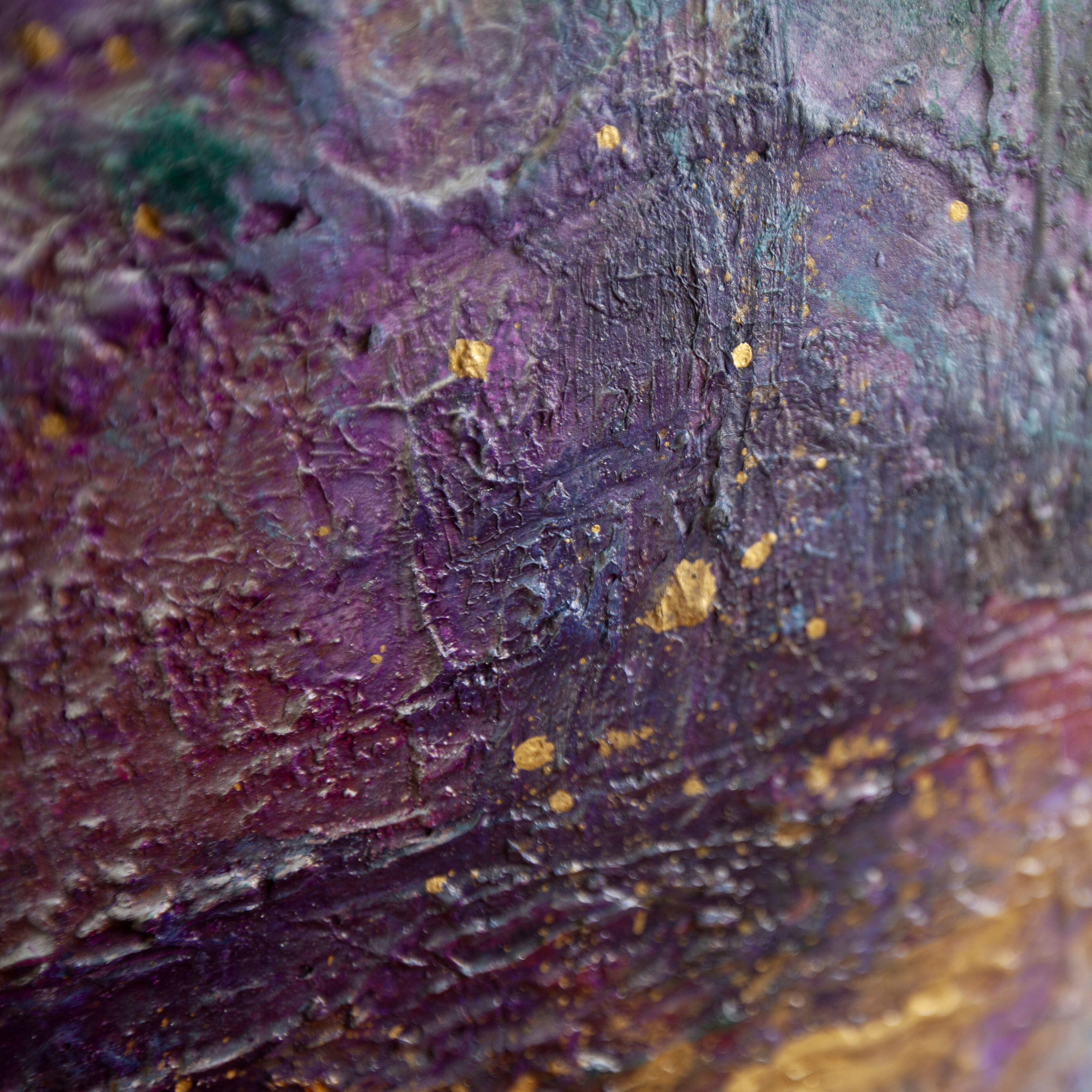 Obraz abstrakcyjny wykonany techniką mixed media - akryl, pasta strukturalna oraz pyłki UV i złoty spray. Obraz jest zabezpieczony werniksem satynowym. Boki obrazu zamalowane w tonacji obrazu. Obraz sprzedawany jest bez ramy.