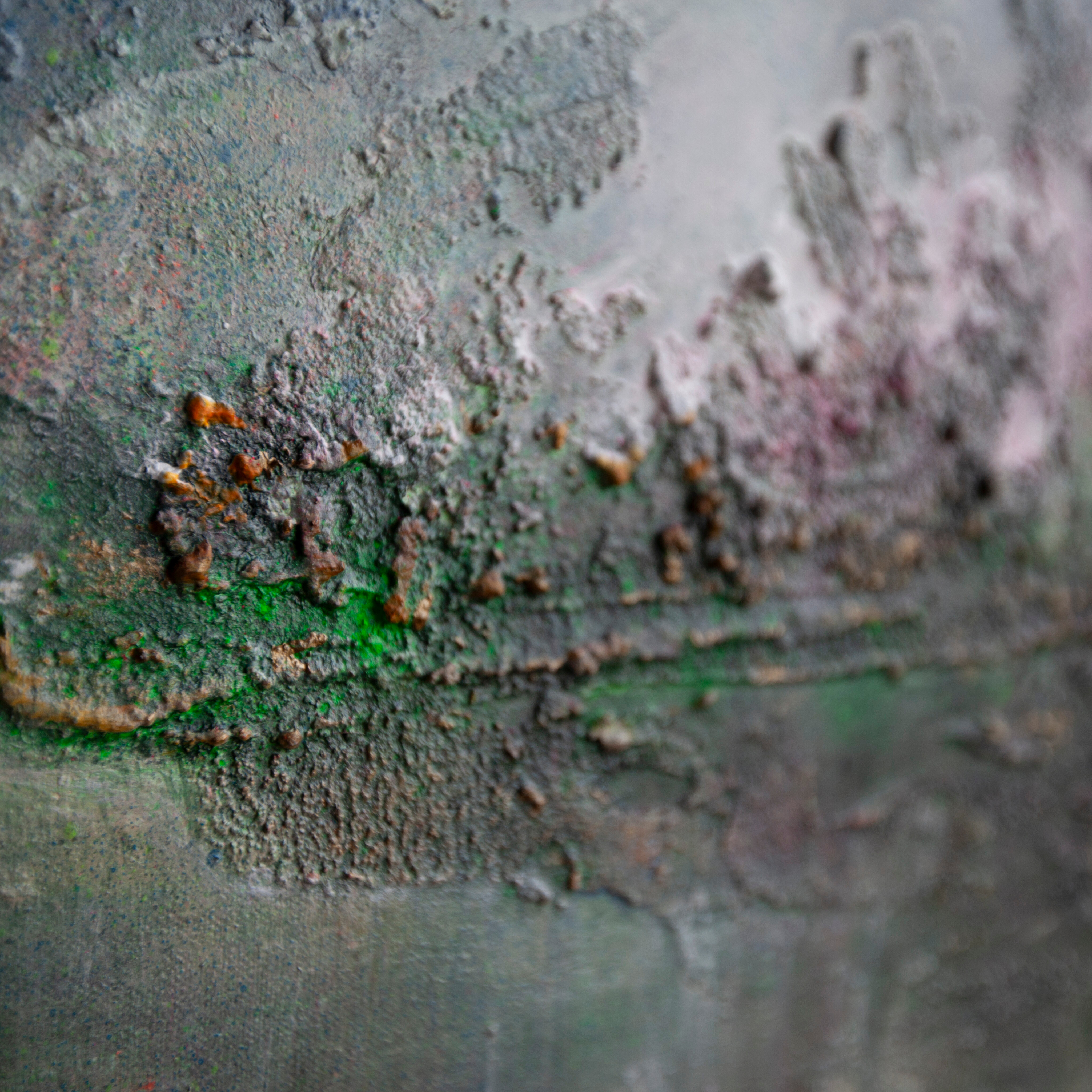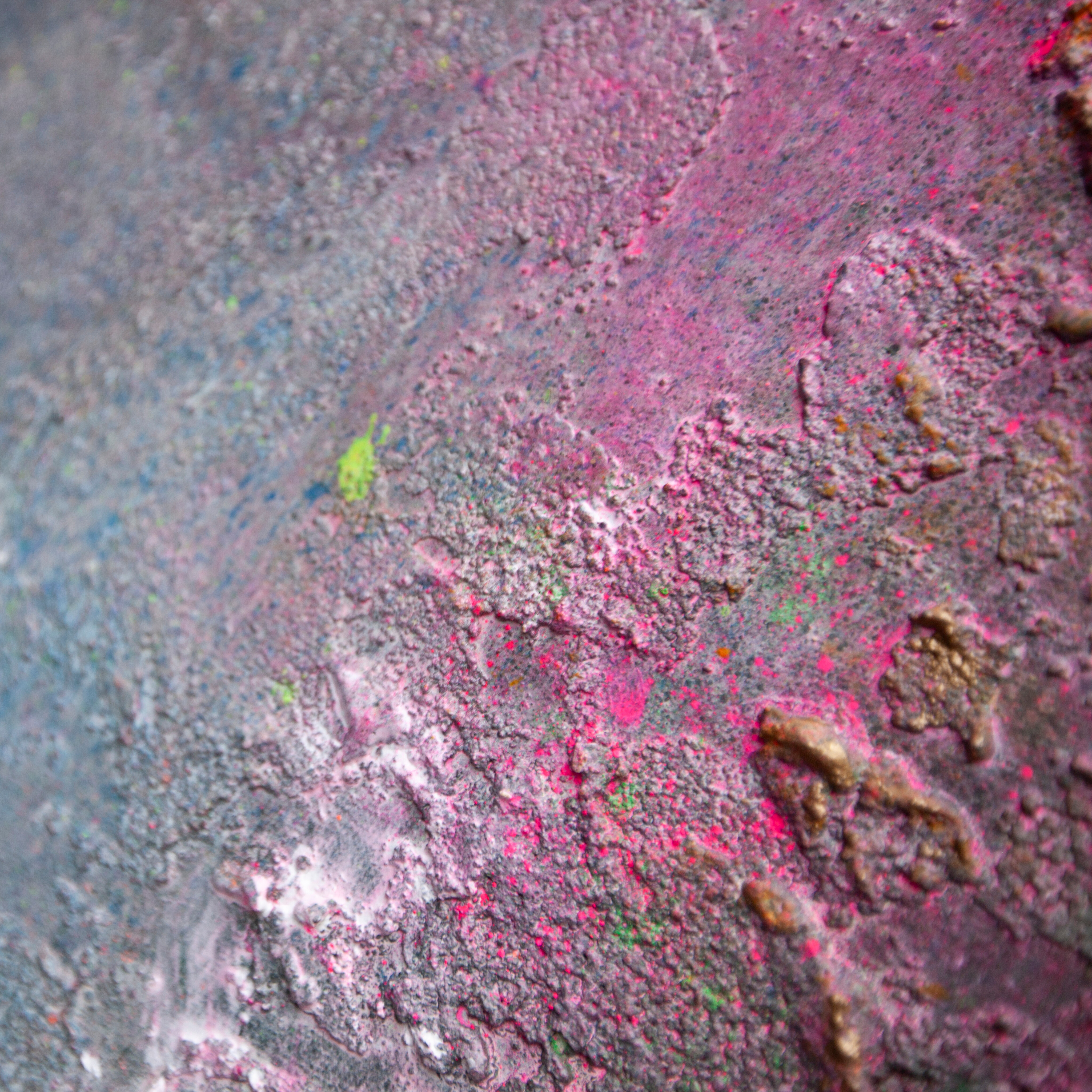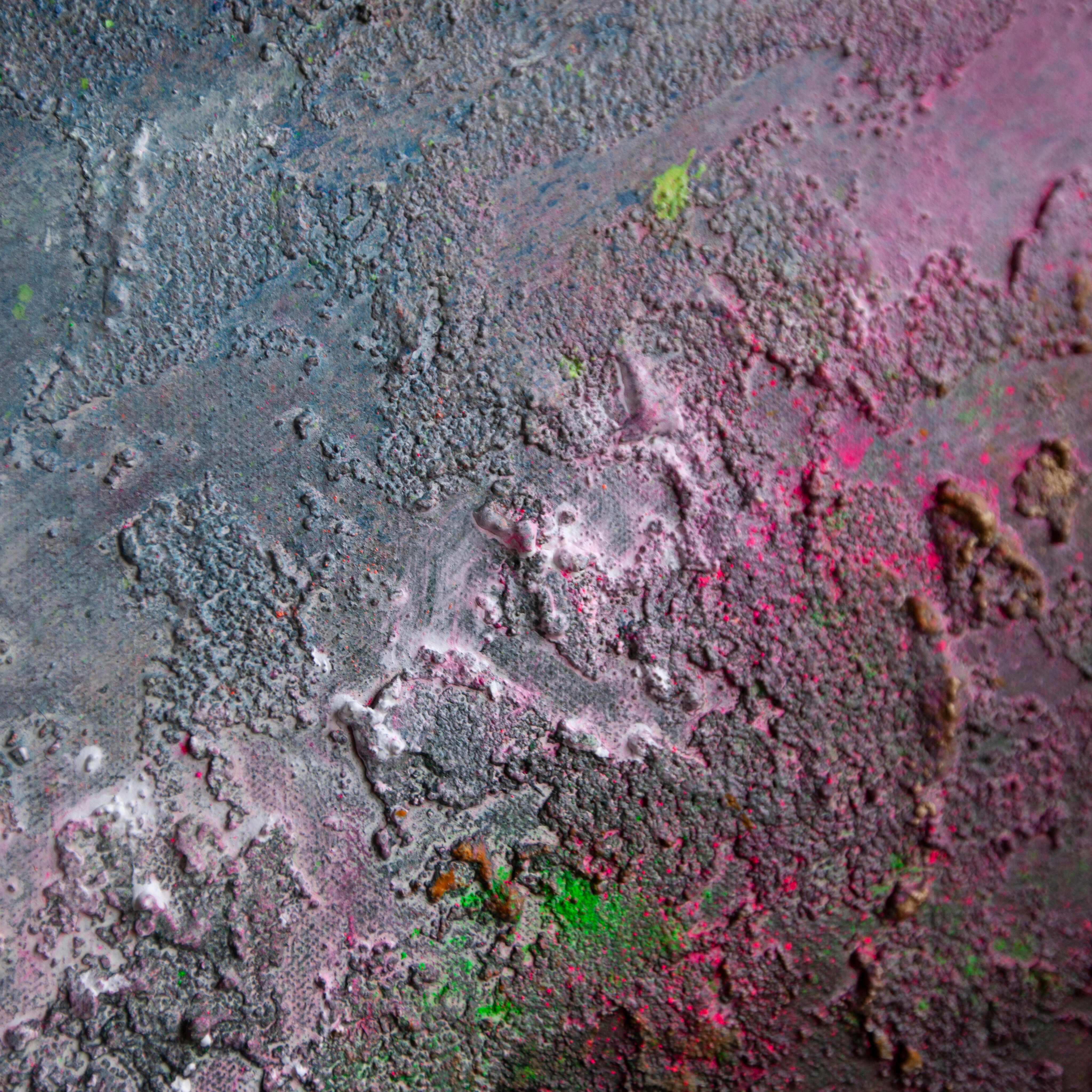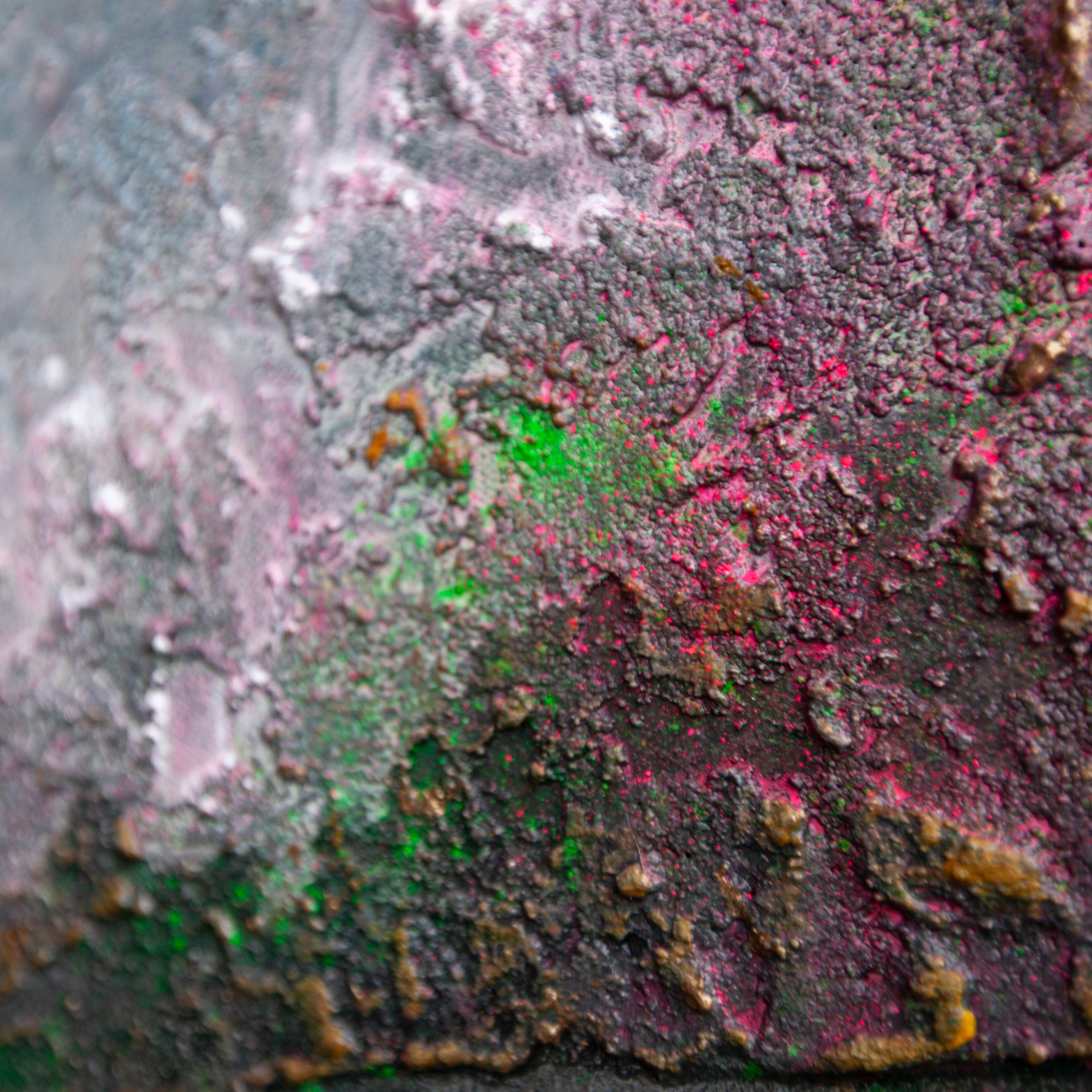 Obraz abstrakcyjny wykonany techniką mieszaną - akryl i pasta strukturalna i pyłek UV. Zawerniksowany werniksem błyszczącym. Boki obrazu zamalowane w tonacji obrazu. Obraz sprzedawany bez ramy.