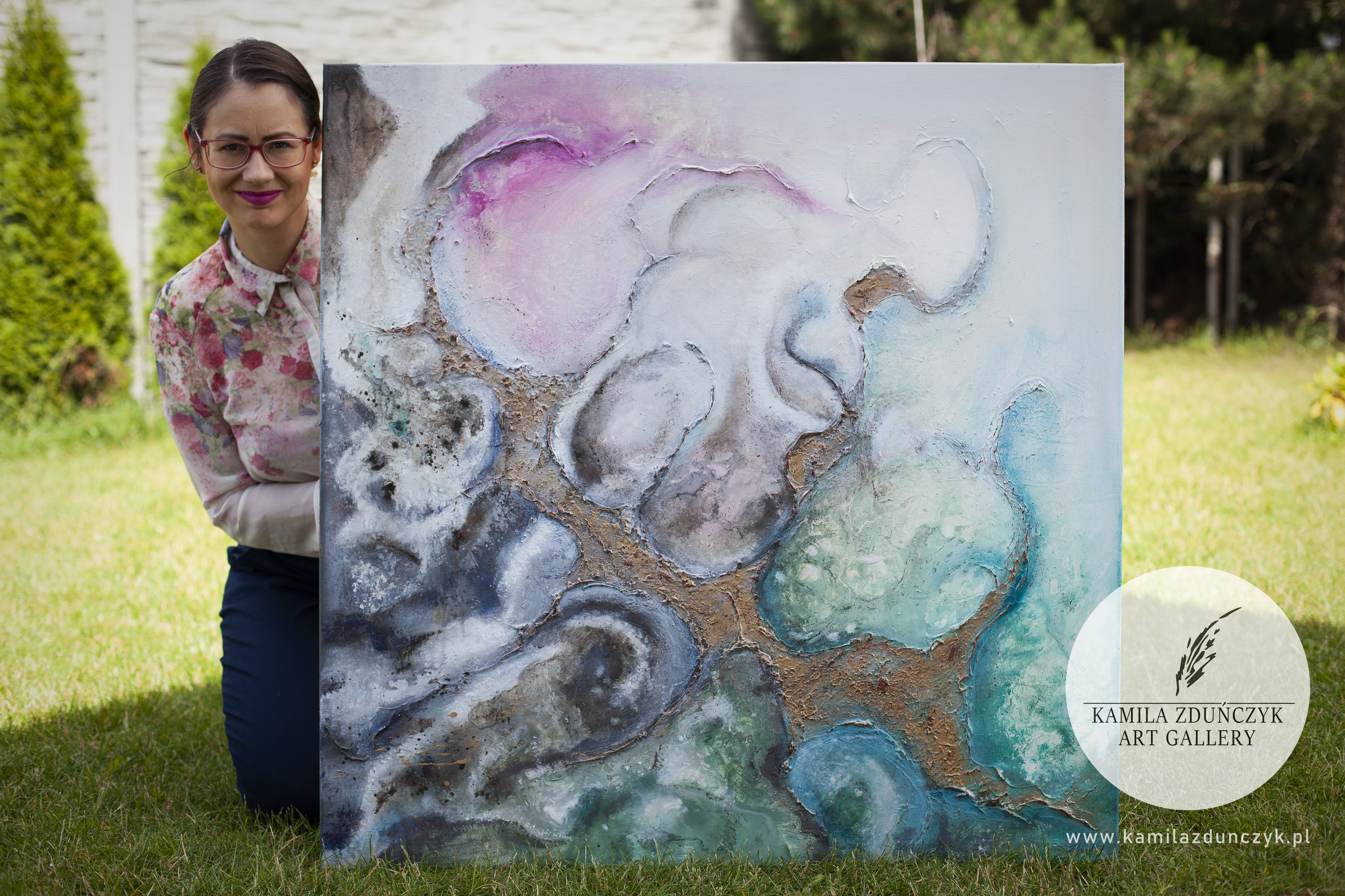 Ta kosmiczna kompozycja utkana jest z wielu warstw, które się nawzajem przenikają, uzupełniają i współgrają w szalonym tańcu kolorów, faktur i struktur.