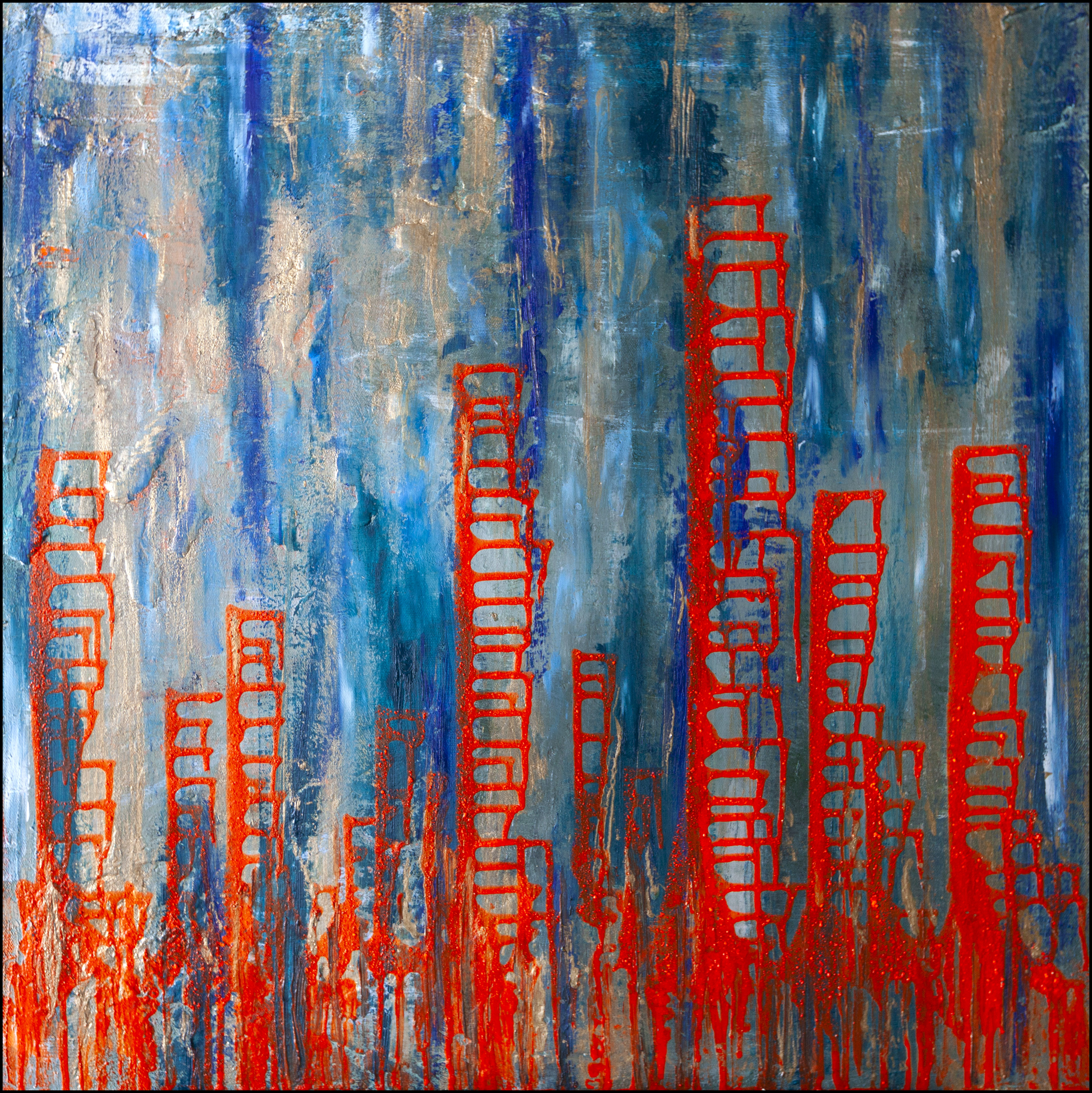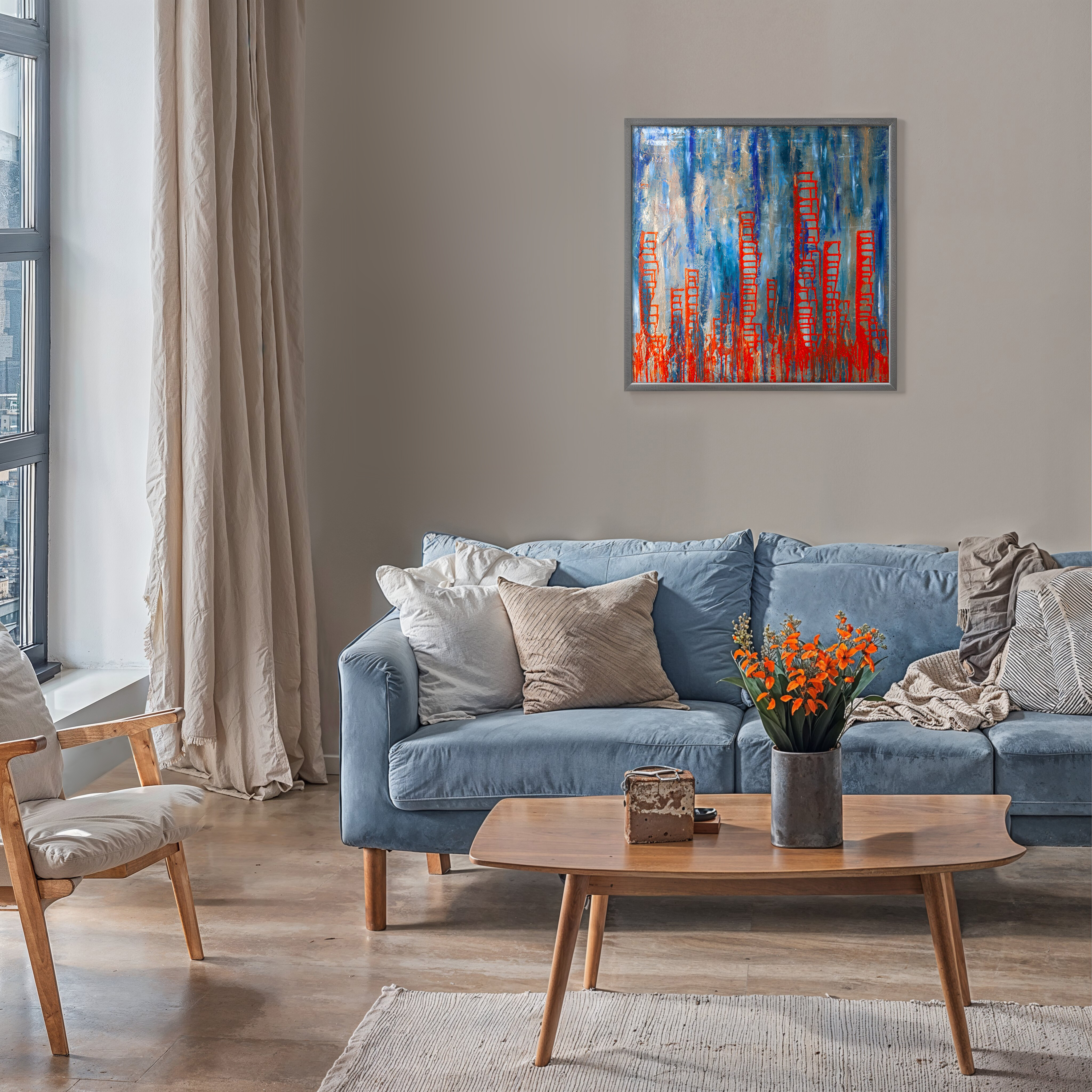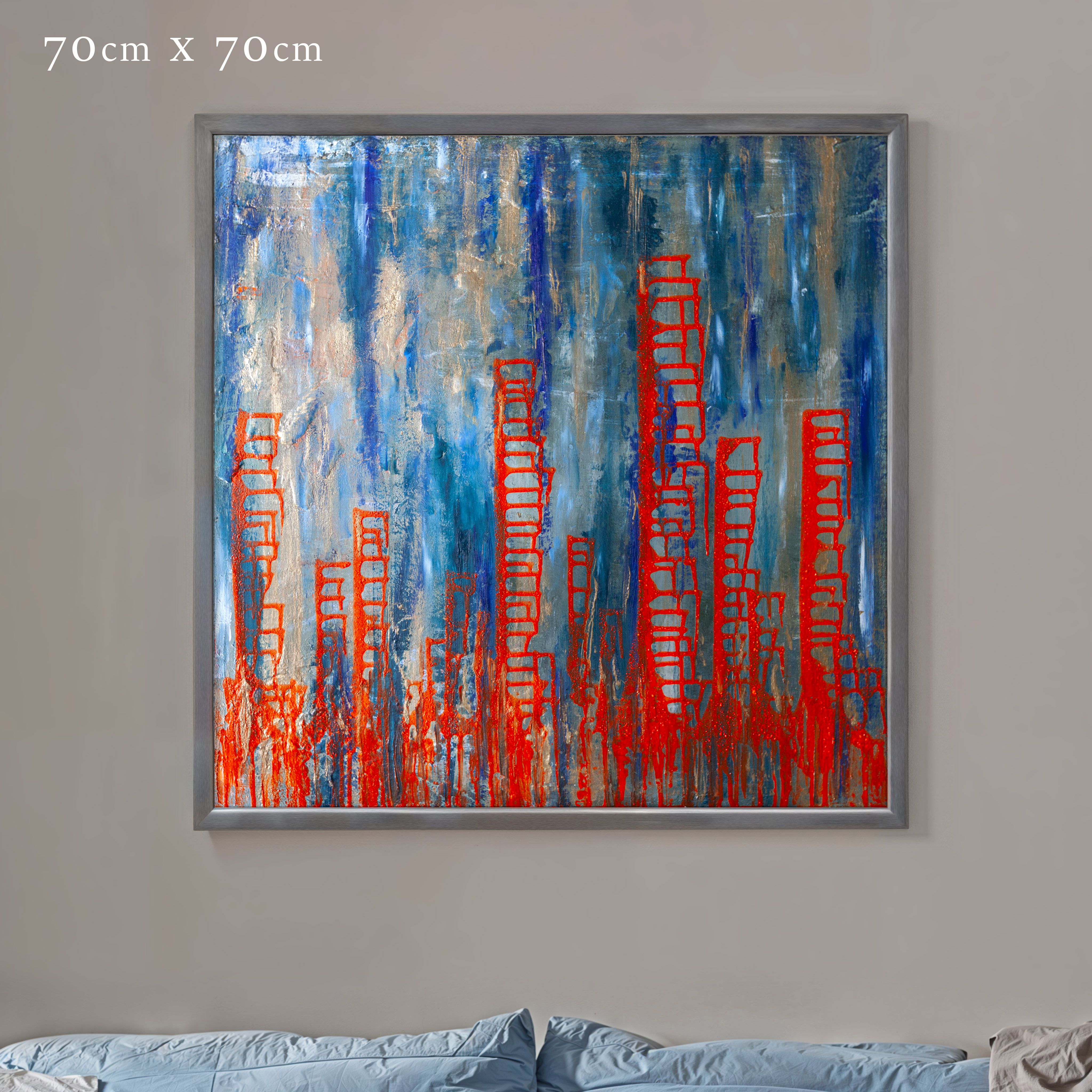 Ten niezwykle intensywny obraz nie pozwala nikomu przejść obojętnie - przykuwa wzrok mieniącą się złotą teksturą oraz intensywną granulowaną pomarańczą. Obraz jest nawiązaniem do intensywności dużego miasta, który tętni barwą, światłami i życiem o każdej porze dnia.
