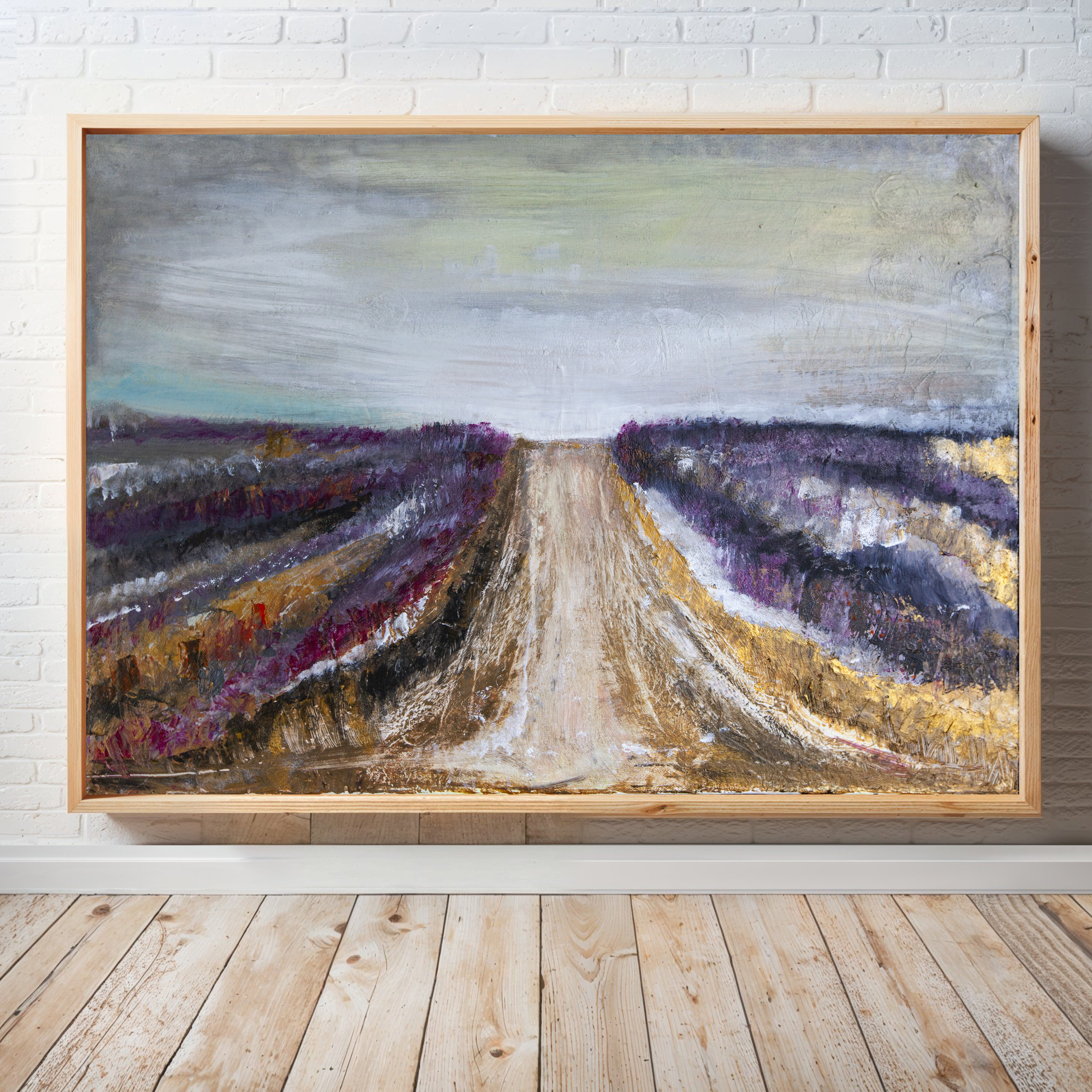 Praca jest zabezpieczona werniksem a boki pracy są starannie zamalowane. Jest to niezwykle ciepłe, nostalgiczne przedstawienie drogi rozumianej zarówno dosłownie, jak i w przenośni. Praca idealnie pasuje do wnętrz rustykalnych, ceglastych ścian oraz będzie idealnym prezentem do kuchni czy innego, oryginalnego wnętrza.