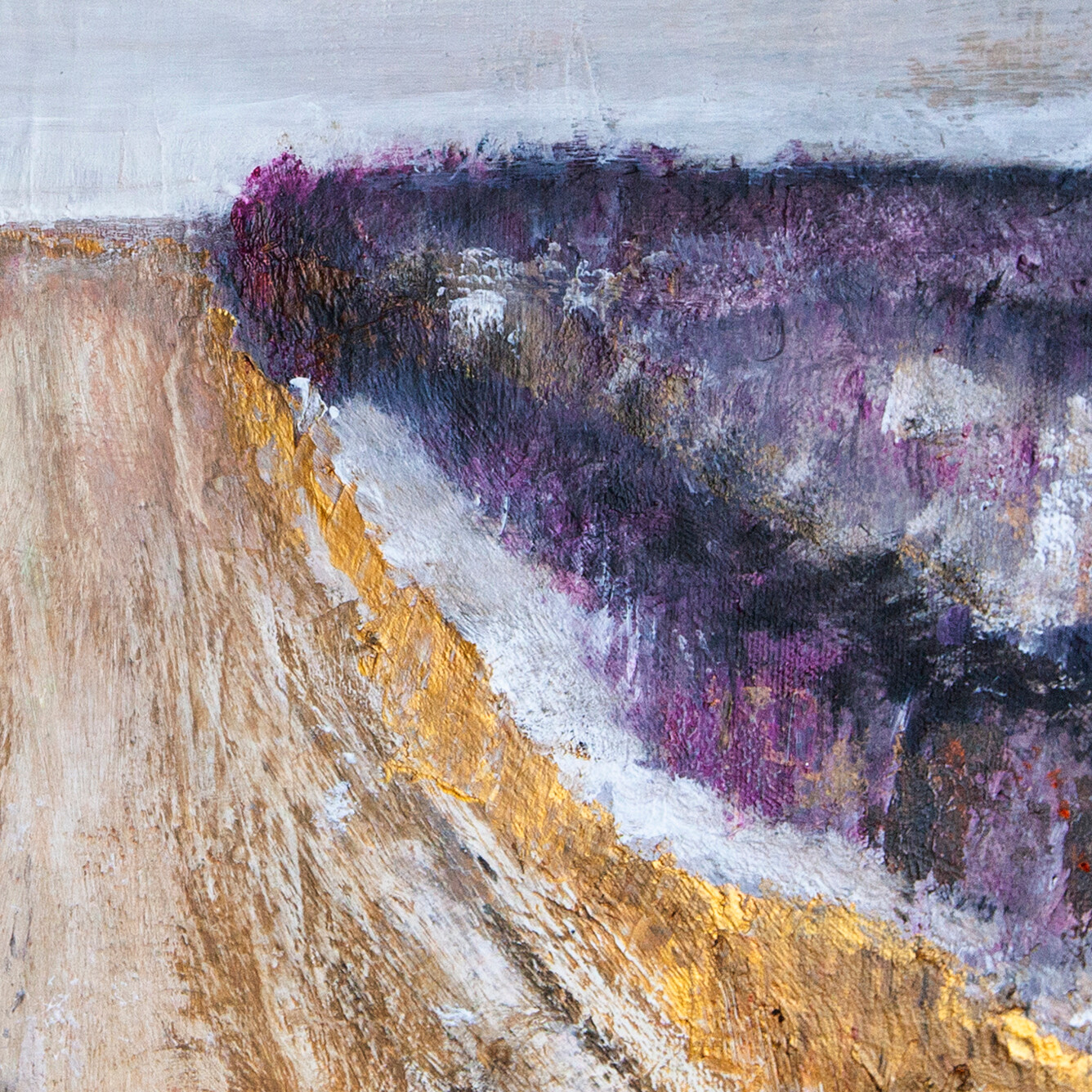 Obraz utrzymany jest w żywych kolorach fioletu, żółci, brązu z dodatkiem złotej farby, która dodaje niebywałego waloru kolorystycznego i mieni się w promieniach słońca. Nad polem wrzosów unosi się piękne, nostalgiczne niebo z błękitnym przebiciem i efemerycznymi chmurami.